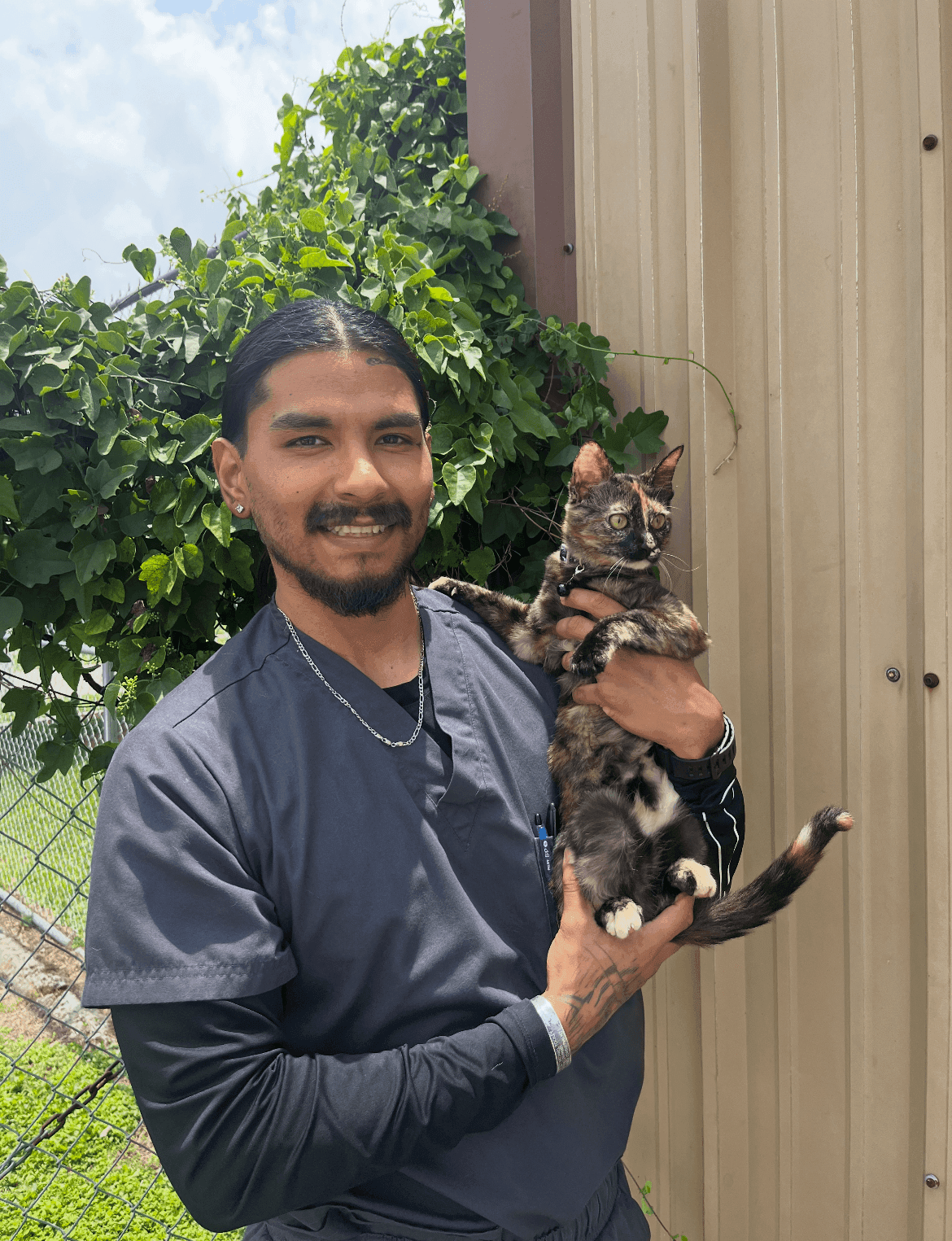 David graduated from Hendrickson High school in 2019 and is currently enrolled in college. He has acquired his Level 1 CVA (Certified Veterinary Assistant) through the Pflugerville Independent School District Animal Science program. David joined the CTAH Family in May 2022 and enjoys the experience and the people he has met along the way. He has 3 dogs with different personalities, ranging from timid to calm to ornery, and he loves all of them.